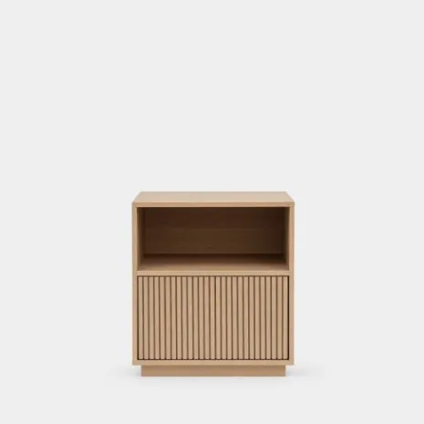 La mesita de noche Saven es perfecta si buscas un mueble que aporte calidez y un diseño distintivo a tu dormitorio. Su acabado en madera natural y los detalles de su frontal crean una textura única. Su diseño combina un práctico hueco abierto para tener tus esenciales a mano, y un amplio cajón inferior para guardar tus objetos personales de forma discreta y ordenada. Descubre el resto de la colección Saven y consigue un ambiente lleno de estilo en tu hogar.