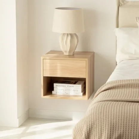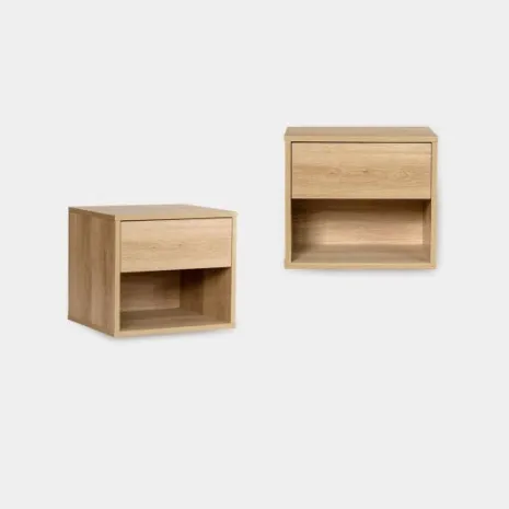 ¡Aprovéchate de este pack de 2 mesitas! La mesita de noche flotante Harbor ofrece la combinación perfecta entre diseño y practicidad. Acabada en madera tono natural, aporta calidez y elegancia a tu dormitorio. Su cajón proporciona almacenamiento discreto mientras que el hueco abierto te permite exhibir libros o elementos decorativos según tus gustos Su diseño flotante optimiza el espacio y aporta sensación de amplitud. Ideal para quienes buscan renovar su dormitorio con un toque moderno y versátil.