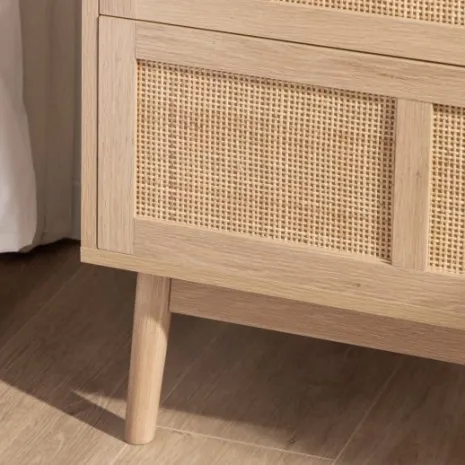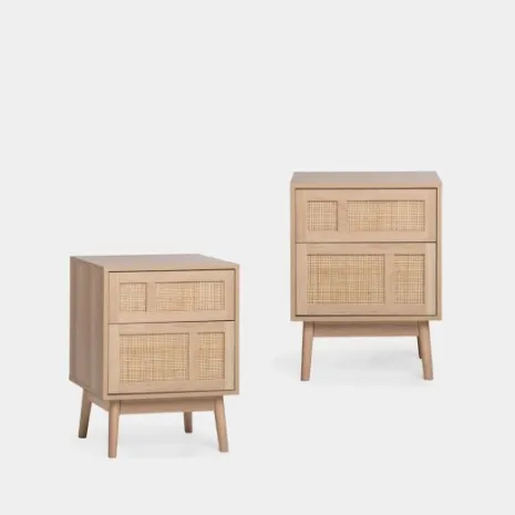 ¡Aprovéchate de este pack de 2 mesitas! Añade un toque de calidez y estilo a tu dormitorio con la mesita de noche Ikigai, acabada en madera y ratán natural. Su diseño fusiona la serenidad del estilo escandinavo con la elegancia del minimalismo japonés, aportando un ambiente único a tu zona de descanso. Sus dos cajones proporcionan bastante espacio de almacenamiento práctico y discreto para tus objetos personales. Combínala con otros muebles de la colección para lograr un look completo y atemporal.
