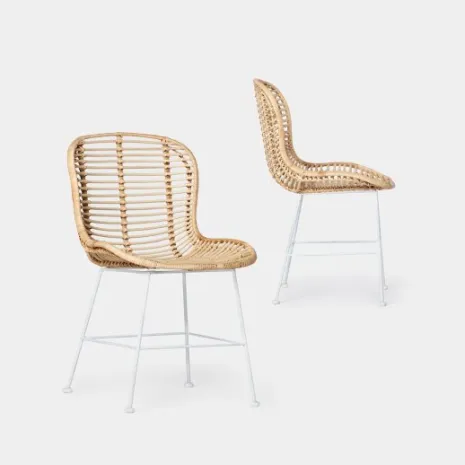 ¡Aprovéchate de este pack! La silla Leo, elaborada en ratán natural, añadirá ese toque cálido y natural que estás buscando para tu hogar. Su asiento está fabricado artesanalmente con ratán natural, un material resistente y duradero que nunca pasa de moda. Puede presentar irregularidades y ligeras variaciones en el color, lo que añade un encanto único a cada pieza.