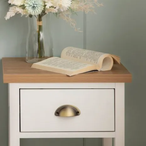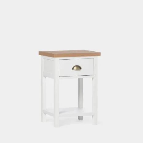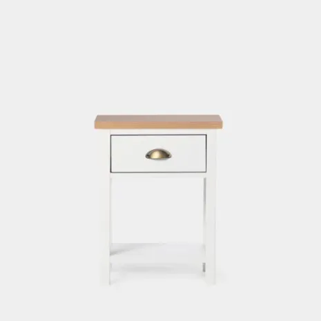 La mesita de noche blanca de un cajón Marais es un clásico que encaja en cualquier dormitorio. Cuenta con un cajón y con un estante inferior en el que podrás dejar todo lo que quieras tener a mano. El cajón cuenta con un sistema de cierre con retención que evita que se den golpes al cerrar e impide la apertura involuntaria. Combínala con la cómoda Marais y crea un dormitorio lleno de encanto.