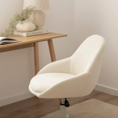 La silla de escritorio Ania es la combinación perfecta entre elegancia y funcionalidad para tu espacio de trabajo. Su tapizado en beige y el asiento acolchado aportan calidez y estilo sin dejar de lado la comodidad. Con su sistema giratorio, altura regulable y ruedas tendrás total libertad de movimiento para encontrar la posición ideal. Está disponible en otros colores, para que elijas la opción que más te guste.