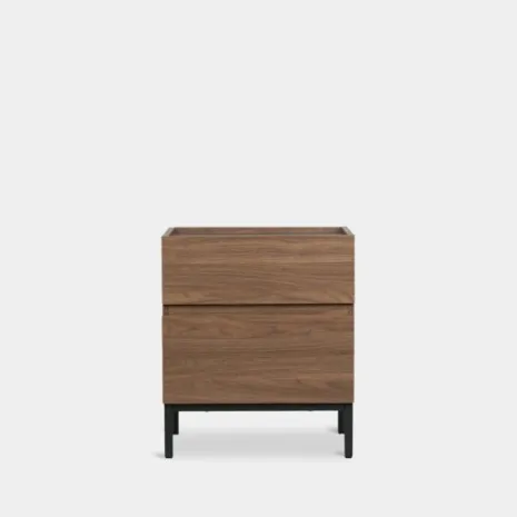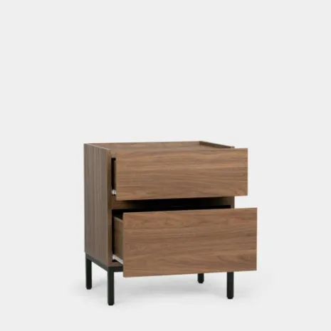 Renueva tu habitación con la mesita de noche Peyton, que combina un acabado en madera color nogal con elegantes patas metálicas negras. Su estilo moderno y minimalista aporta sofisticación y carácter a cualquier dormitorio. Cuenta con dos cajones que proporcionan almacenamiento funcional y organizado para todos tus elementos esenciales. Descubre el resto de la colección Peyton y crea un ambiente único y contemporáneo en tu hogar.