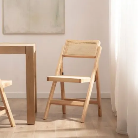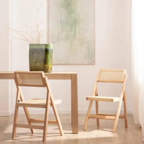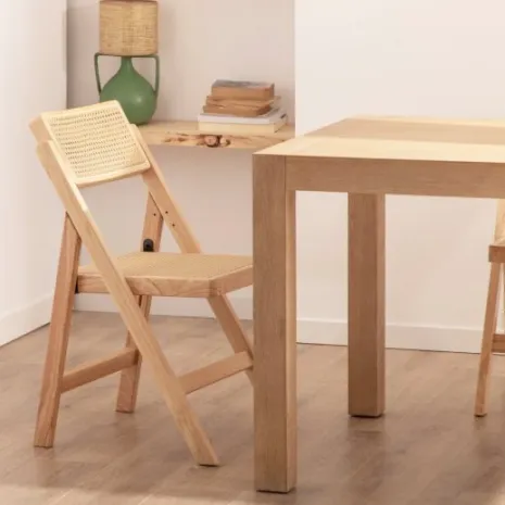 La silla plegable Pia combina la calidez de la madera de hevea con la ligereza del ratán, ofreciendo un diseño elegante y funcional. Su capacidad de plegarse con facilidad permite ahorrar espacio y mantener el hogar organizado. Con Pia, disfrutarás de una solución de asiento que fusiona estética y practicidad. Al ser de madera maciza, puede presentar variaciones de color propias del material.