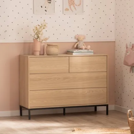 Haz que la habitación de tu pequeño sea más estilosa con la cómoda infantil de 4 cajones Remi. Su diseño moderno y funcional, ofrece el espacio perfecto para guardar su ropa, juguetes y accesorios, manteniéndolos siempre al alcance y en orden. Descubre el resto de la colección Remi y crea un espacio práctico, bonito y acogedor para el dormitorio de tu hijo.