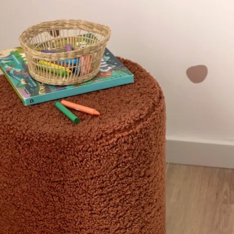 El puf redondo Arles, tapizado en borreguito color terracota, aporta un toque de calidez y modernidad a la habitación de tu pequeño. Su diseño compacto lo convierte en una opción ideal como asiento extra para jugar o leer, o simplemente como complemento decorativo que añade personalidad a su cuarto. Su tapizado en borreguito aporta textura y confort, mientras que el tono terracota brinda ese toque de color especial que hará su espacio aún más acogedor.