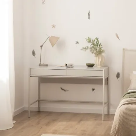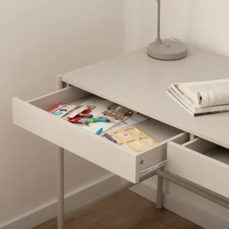 Transforma el cuarto de tu hijo en el espacio de estudio perfecto con el escritorio Cleo. Sus líneas sencillas y diseño ligero aportan modernidad y funcionalidad, ideal para hacer los deberes o desarrollar la creatividad. Equipado con dos cajones de apertura push, ofrece espacio fácilmente accesible para guardar el material escolar. Este escritorio combina una estética moderna con funcionalidad, perfecto para acompañar a tu pequeño mientras crece.