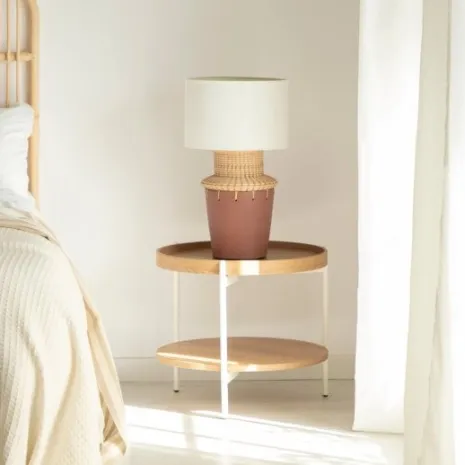 ¡Aprovéchate de este pack! Si buscas añadir un toque nórdico a tu dormitorio, la mesita de noche Dan en madera color natural con pata metálica blanca es la opción perfecta para ti. Su acabado natural brinda calidez y encanto a tu zona de descanso, creando un ambiente sereno y acogedor. Una mesita muy práctica que aporta funcionalidad y estilo a tu hogar.