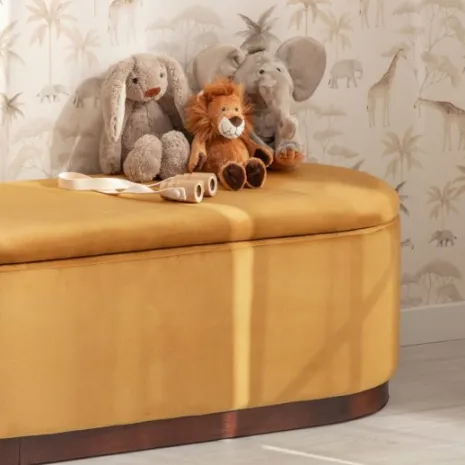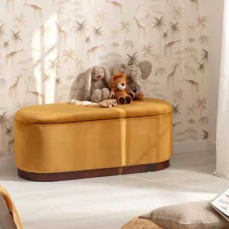 El banco Isola, tapizado en suave terciopelo mostaza, combina estilo y funcionalidad, perfecto para la habitación de tu peque. Su diseño elegante y acogedor no solo aporta comodidad, sino que también añade un toque fresco y especial a su cuarto. Con un práctico compartimento de almacenamiento, es perfecto para guardar sus mantas, juguetes o cuentos siempre organizados. Ideal como asiento extra para jugar o leer, el banco Isola se convierte en una pieza versátil y encantadora que hará su habitación aún más especial.