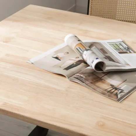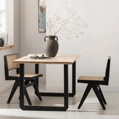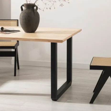 La mesa de comedor Khonor en madera de hevea con pata metálica negra de líneas rectas es ideal para completar la decoración de tu comedor o cocina. Es apta para 6 comensales e ideal para compartir tus mejores momentos con familia o amigos. Su estilo atemporal hace que sea capaz de encajar en cualquier estilo decorativo. También está disponible con las patas en blanco, escoge la que más te guste.