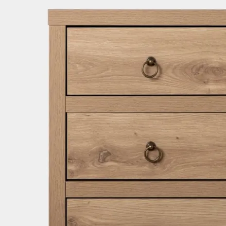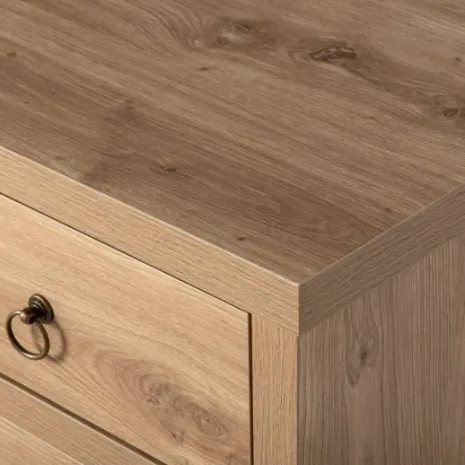 ¡Aprovéchate de este pack! La mesita de noche en madera color natural Livorno es ideal para crear un dormitorio cálido y acogedor. Sus tres amplios cajones, serán tus aliados para mantener tu espacio en orden. Combínala con otros muebles de la misma colección y consigue un look completo y armonioso en tu dormitorio.