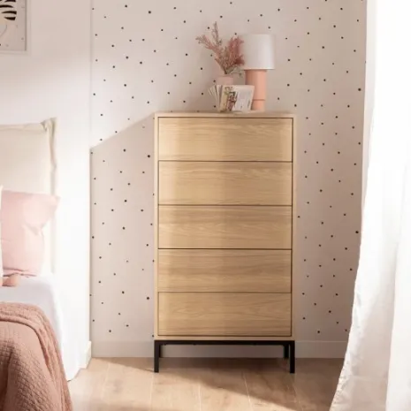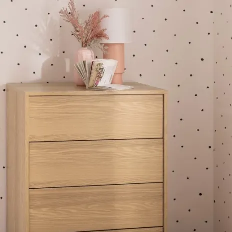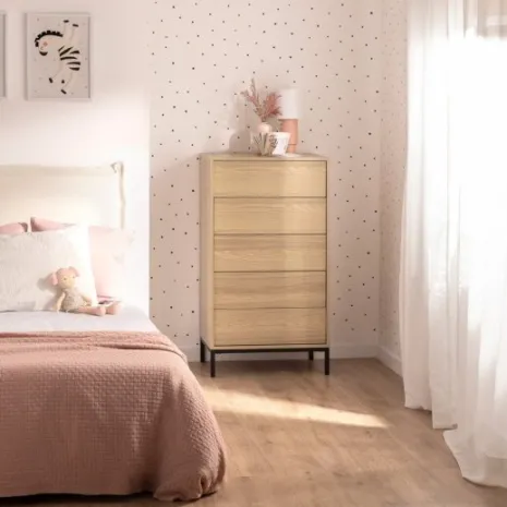 Añade elegancia y practicidad al cuarto de tu hijo con la cajonera Remi. Esta pieza ofrece mucho almacenamiento a la vez que ahorra espacio. Sus cinco amplios cajones son ideales para guardar la ropa de tu peque, sus juguetes y mantener sus pertenencias favoritas siempre organizadas. Completa la habitación con la elegancia y practicidad de la colección Remi que nunca pasará de moda.