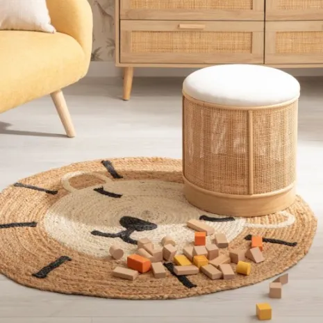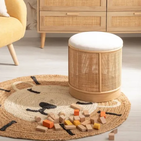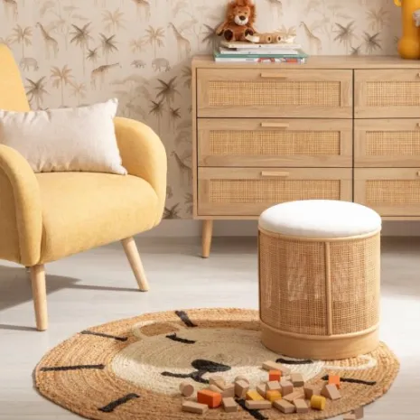 El puf redondo Sure combina la suavidad del terciopelo con la calidez del ratán, creando un ambiente acogedor en la habitación de tu peque. Su tamaño lo hace perfecto como asiento extra para jugar, leer o simplemente como una pieza decorativa que añade ese toque especial a su cuarto.