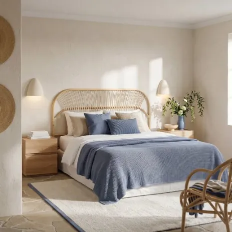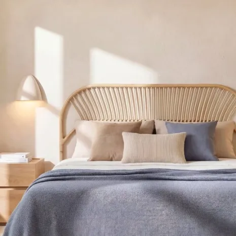 El cabecero de ratán natural Doe le dará a tu dormitorio el aire natural y fresco que estabas buscando. Está fabricado artesanalmente con ratán natural, por lo que puede presentar irregularidades y ligeras variaciones en la tonalidad respecto al color que se muestra en la imagen. Se puede utilizar con camas de 135, 150 y 160 cm. Requiere anclaje a pared, recomendamos anclarlo en función de la altura del cochón. La tornillería no está incluída.