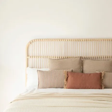 Dale un toque especial a tu dormitorio con el cabecero Etria. Fabricado artesanalmente en ratán natural, esta pieza aporta autenticidad y calidez al espacio. Su diseño y textura crean un ambiente acogedor que invita al descanso. Es compatible con camas de 135, 150 y 160 cm.