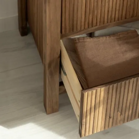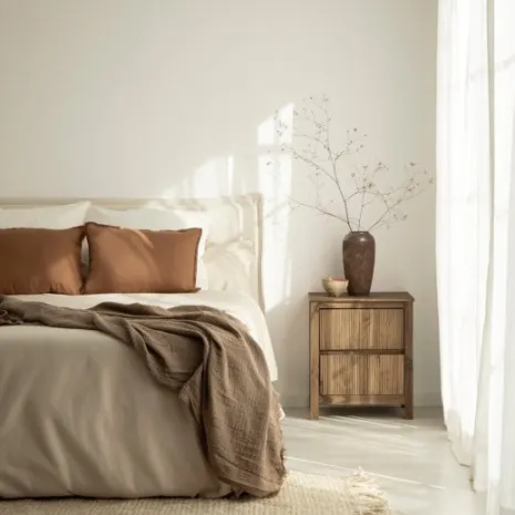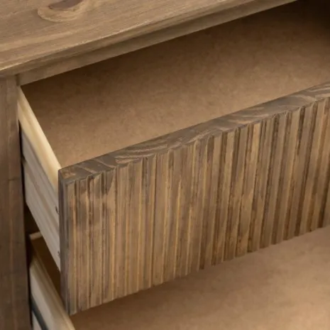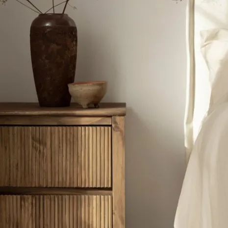 ¡Aprovéchate de este pack! Eleva el estilo de tu dormitorio con la mesita de noche de 2 cajones Hanne, fabricada en madera de araucaria con acabado en color nogal. Su diseño contemporáneo se distingue por líneas estilizadas, aportando sofisticación y personalidad. Las vetas de la madera añaden textura y carácter, creando un contraste visual que convierte cada pieza en única. Combínala con el resto de la colección para conseguir que tu habitación transmita calidez y elegancia.