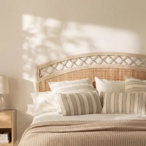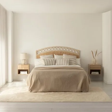 Transforma tu dormitorio con el cabecero Lilay, fabricado artesanalmente en ratán natural. Su textura orgánica y diseño único añaden personalidad y calidez a tu habitación, creando ese ambiente acogedor que buscas para tu zona de descanso. Es compatible con camas de 135, 150 y 160 cm.