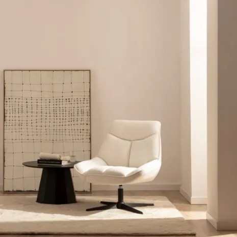 La butaca Anouk es la combinación perfecta de elegancia y comodidad. Su tapizado beige y líneas sofisticadas la convierten en la pieza ideal para aportar distinción a cualquier ambiente de tu hogar. Gracias a su base giratoria podrás moverte con total libertad en todas las direcciones. Su asiento amplio y respaldo envolvente están pensados para ofrecerte el máximo confort en cada momento de relax.