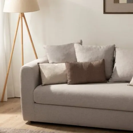 El sofá Chloe de 3 plazas tapizado en gris topo destaca por sus líneas modernas y su diseño contemporáneo. Presenta formas redondeadas y un acabado elegante que lo convierte en el centro de atención de cualquier salón. Sus múltiples cojines, junto con su amplio asiento bien acolchado, ofrecen una experiencia de confort excepcional, invitando a relajarse en cualquier momento del día.