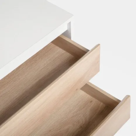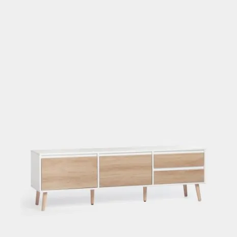 Dale un toque fresco y luminoso a tu hogar con el mueble TV 160 Kemi, acabado en madera color blanco y natural. Su diseño de estilo nórdico y líneas sencillas lo convierte en la opción ideal para crear un ambiente acogedor y armonioso en tu salón. Sus amplios compartimentos ofrecen el espacio perfecto para organizar todos tus dispositivos y accesorios manteniéndolos ocultos. Descubre el resto de la colección Kemi y consigue una decoración equilibrada y con estilo.
