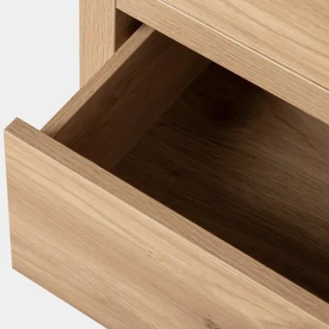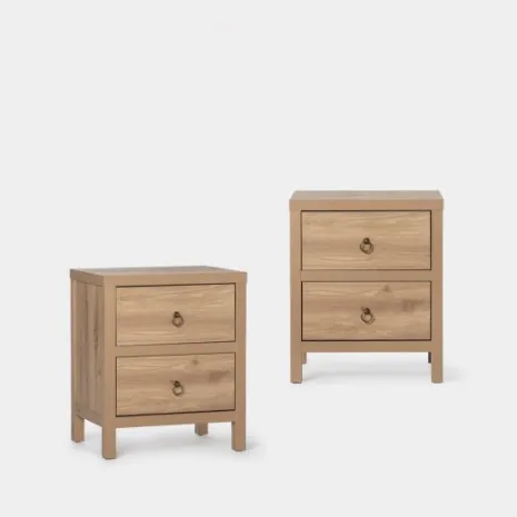 ¡Aprovéchate de este pack! La mesita de noche en madera color natural Livorno es ideal para crear un dormitorio cálido y acogedor. Sus tres amplios cajones, serán tus aliados para mantener tu espacio en orden. Combínala con otros muebles de la misma colección y consigue un look completo y armonioso en tu dormitorio.