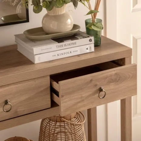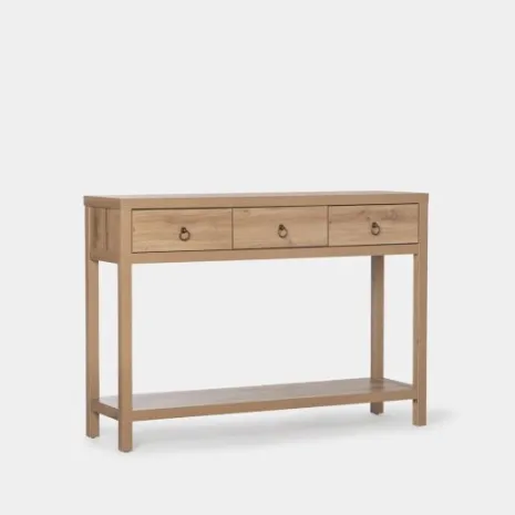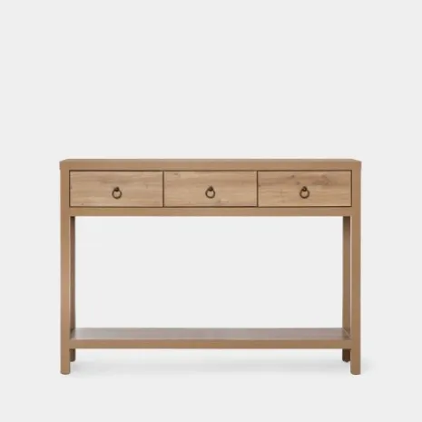 El mueble recibidor Livorno en madera color natural es una excelente opción para dar la bienvenida a tu hogar con estilo y funcionalidad. Sus tres amplios cajones ofrecen un lugar conveniente para almacenar llaves, correo y otros objetos esenciales al entrar o salir de casa. Su acabado en madera natural agrega calidez y encanto a cualquier entrada. Combínalo con otros muebles de la misma colección y consigue un look completo y armonioso en tu hogar.