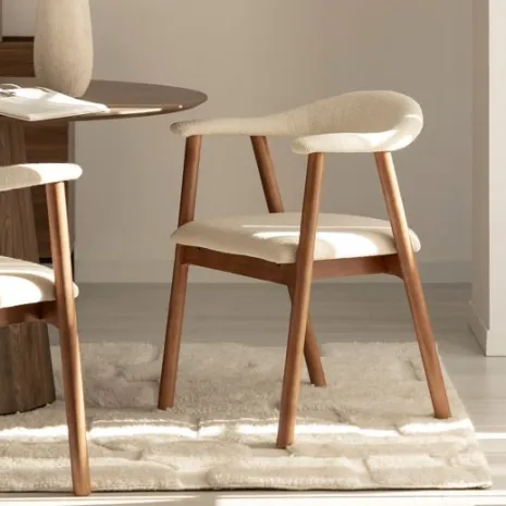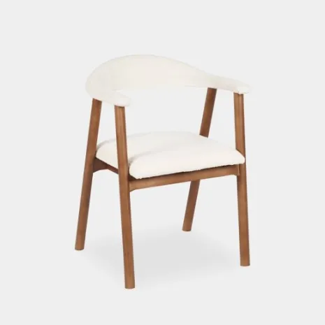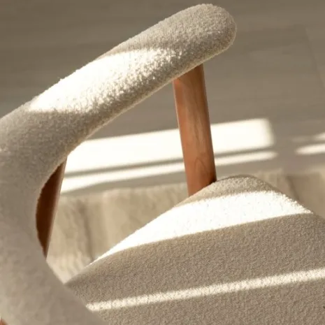 La silla de comedor Noor, tapizada en bouclé beige y con sus elegantes patas de madera de hevea, aporta calidez y sofisticación a cualquier espacio. Su textura suave y envolvente brinda una comodidad excepcional, mientras que su silueta moderna se adapta a diversos estilos decorativos. Esta silla crea un equilibrio perfecto entre lo acogedor y lo contemporáneo, ideal para quienes buscan confort y diseño en su hogar.