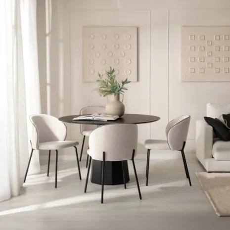 ¡Aprovéchate de este pack! Aporta un toque elegante y sofisticado a tu hogar con la silla tapizada beige y ribete negro con pata negra Norah. Su diseño sencillo y minimalista encaja en cualquier estilo decorativo y su ribete en negro aporta carácter y personalidad a cualquier estancia.