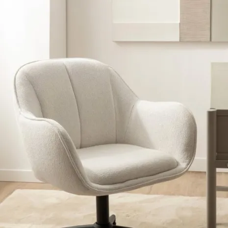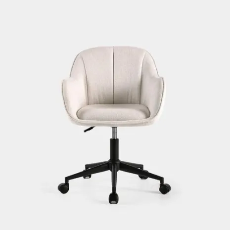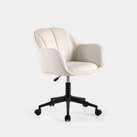 La silla de escritorio Tess combina estilo y funcionalidad para elevar tu espacio de trabajo. Su tapizado beige y su textura suave aportan calidez y elegancia, creando un entorno acogedor que favorece la concentración. Cuenta con reposabrazos, altura ajustable, base giratoria y ruedas, para que disfrutes de la comodidad y movilidad que necesitas durante tu jornada. Una opción práctica y con personalidad para tu oficina o rincón de estudio.