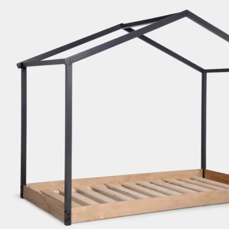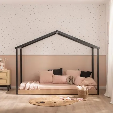 La cama infantil Vitta es la opción perfecta si buscas un estilo divertido y elegante en la habitación de tu pequeño. Su estructura en forma de casita añade un toque lúdico y acogedor a la estancia. Está pensada para fomentar la autonomía de los niños, ya que permite que se suban y bajen con gran facilidad, promoviendo su independencia y libertad. La base en madera de pino natural ofrece resistencia y estabilidad. Esta cama es compatible con colchones de 90×200 cm.